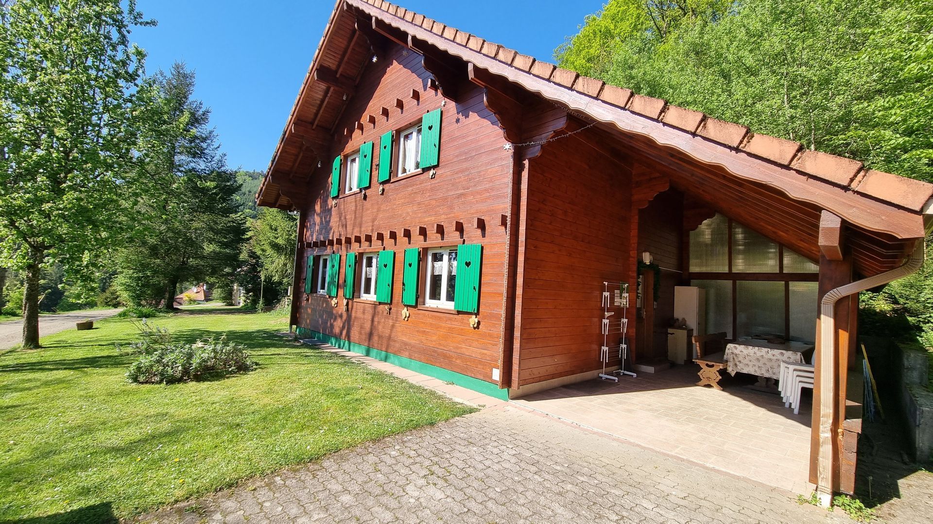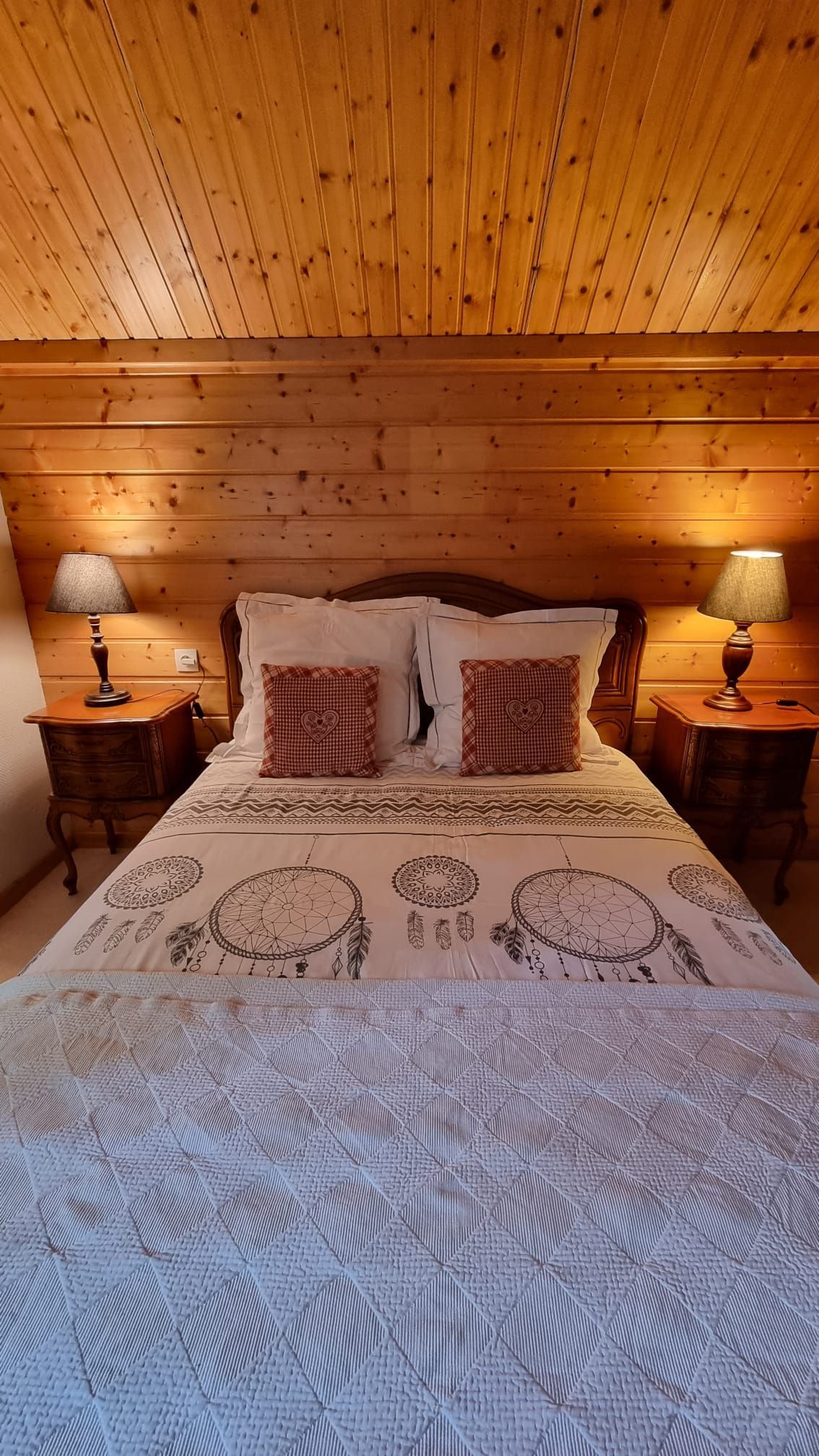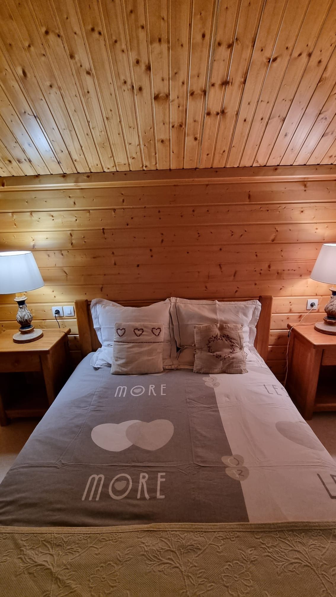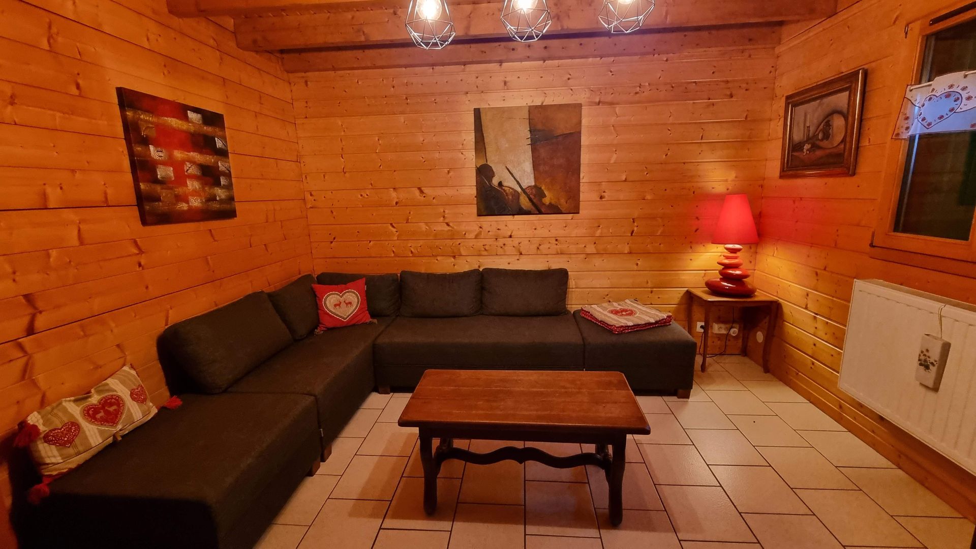 Entièrement en bois, le chalet est d' une surface de 100 m² pour une capacité de 6 personnes.