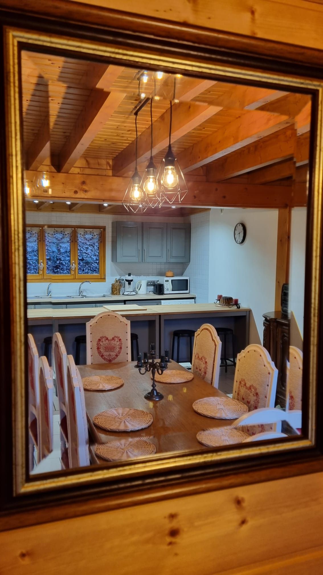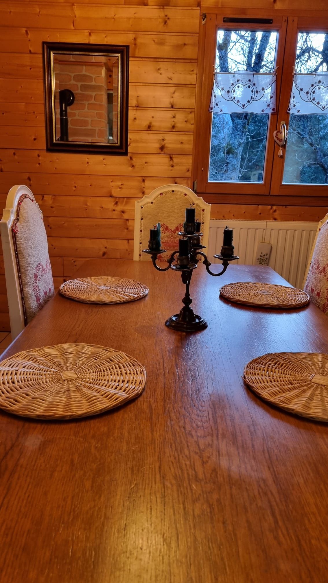 - une salle à manger, salon avec télévision à écran plat et poêle à bois pour l’ambiance,