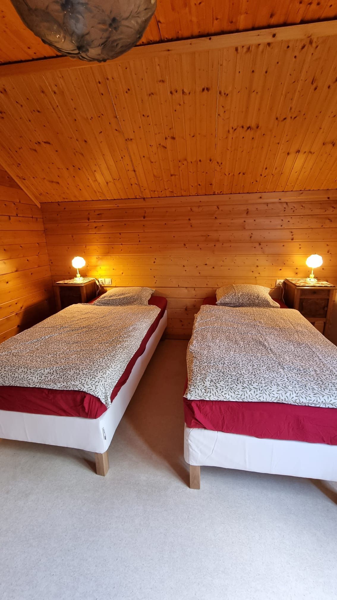 - 1 chambre avec 3 lits simple (2 lits 0.90 x 2.00 et 1 lit 0.90 x 1.90),